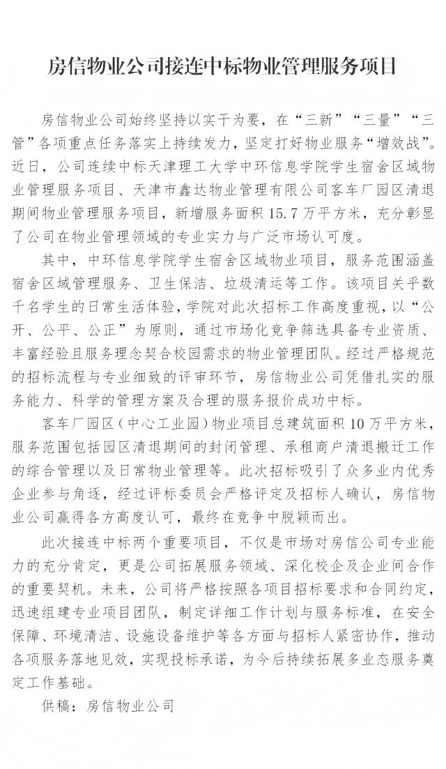 房信物业公司接连中标物业管理服务项目