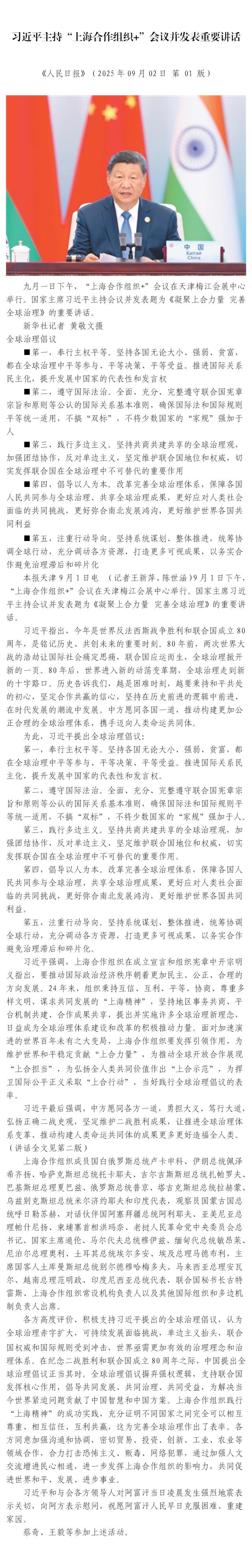 习近平主持“上海合作组织+”会议并发表重要讲话