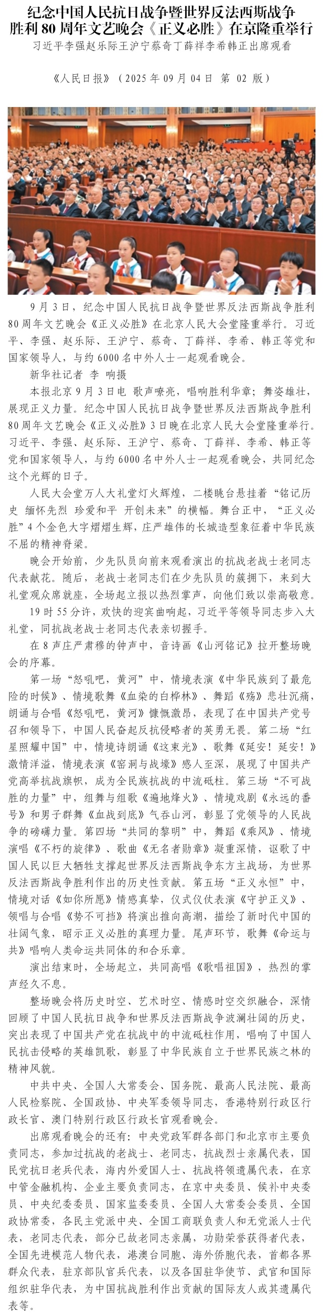 纪念中国人民抗日战争暨世界反法西斯战争 胜利80周年招待会在京隆重举行