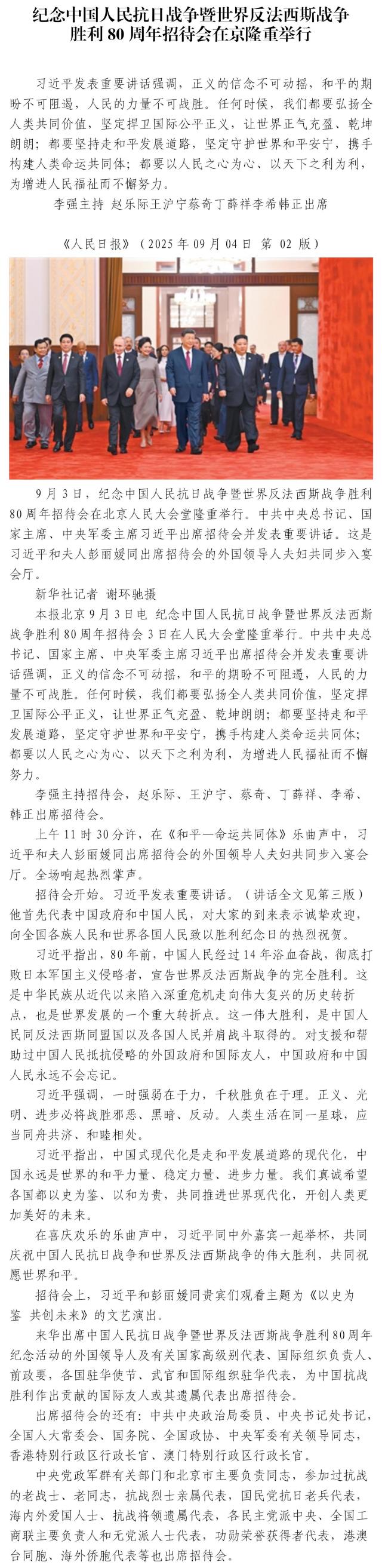 纪念中国人民抗日战争暨世界反法西斯战争 胜利80周年文艺晚会《正义必胜》在京隆重举行