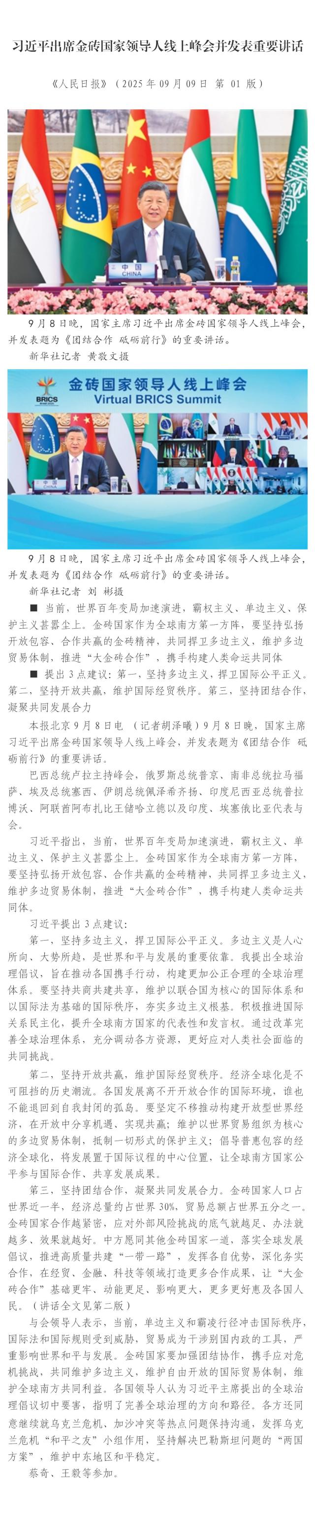 习近平出席金砖国家领导人线上峰会并发表重要讲话