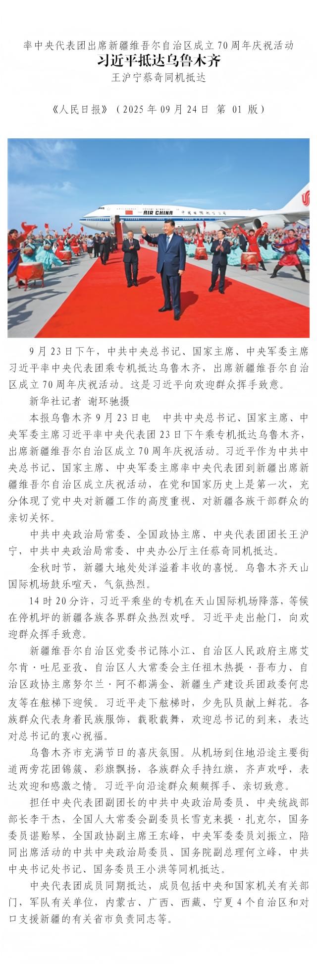 率中央代表团出席新疆维吾尔自治区成立70周年庆祝活动