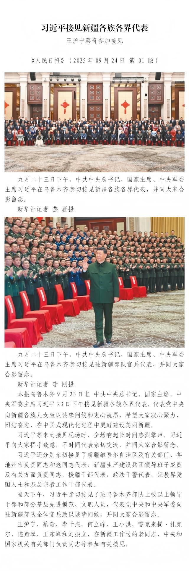 习近平接见新疆各族各界代表