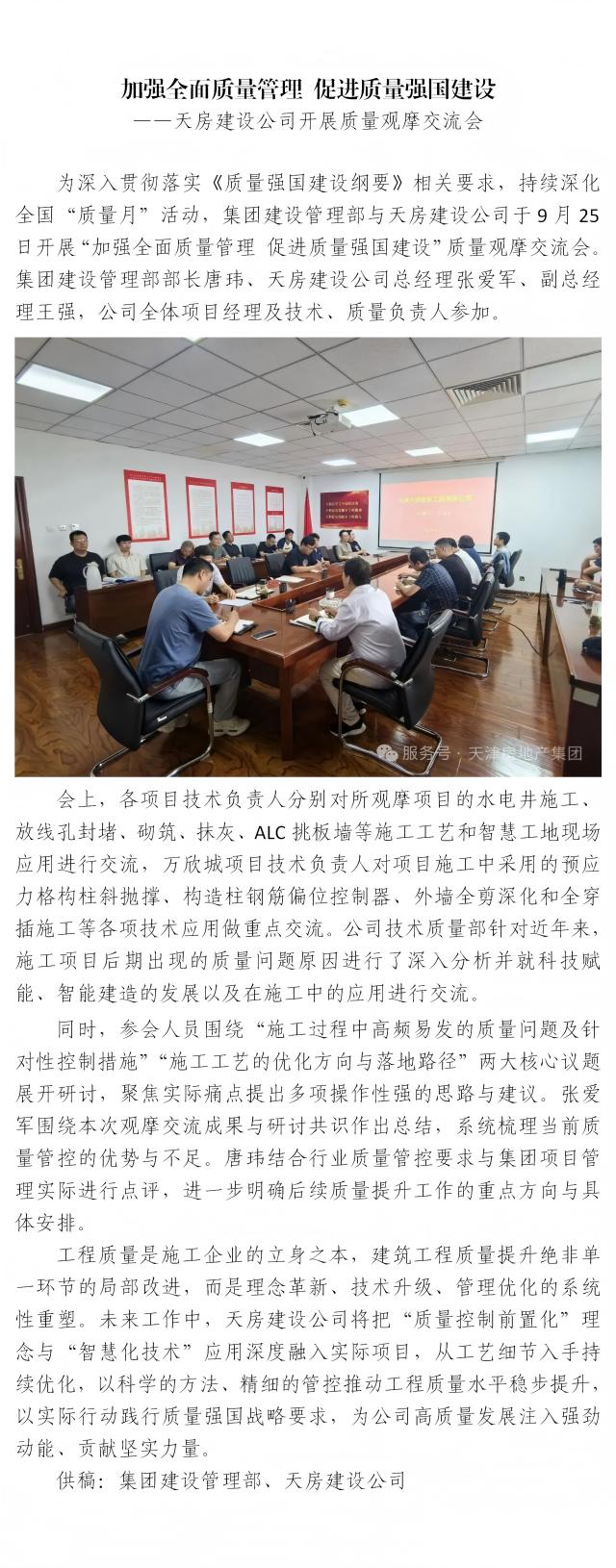 加强全面质量管理 促进质量强国建设 ——天房建设公司开展质量观摩交流会