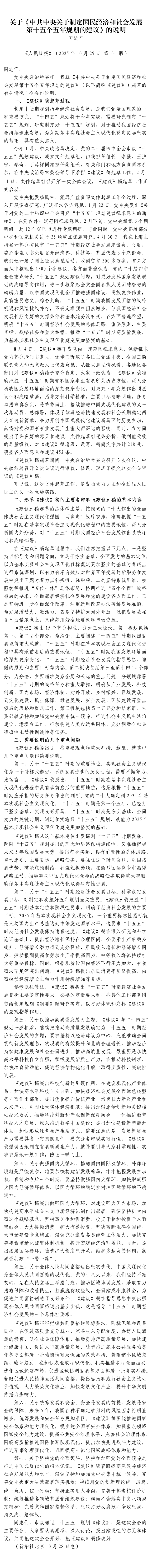 关于《中共中央关于制定国民经济和社会发展第十五个五年规划的建议》的说明