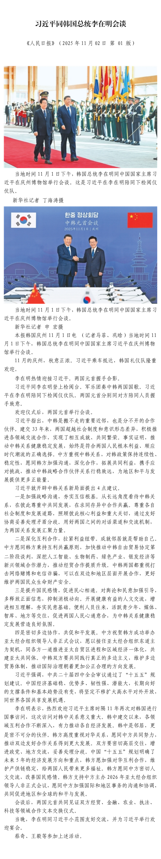 习近平同韩国总统李在明会谈