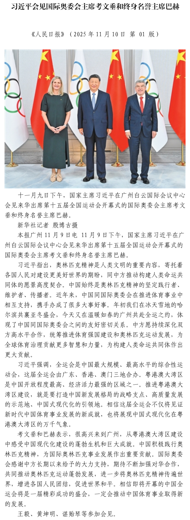 习近平会见国际奥委会主席考文垂和终身名誉主席巴赫