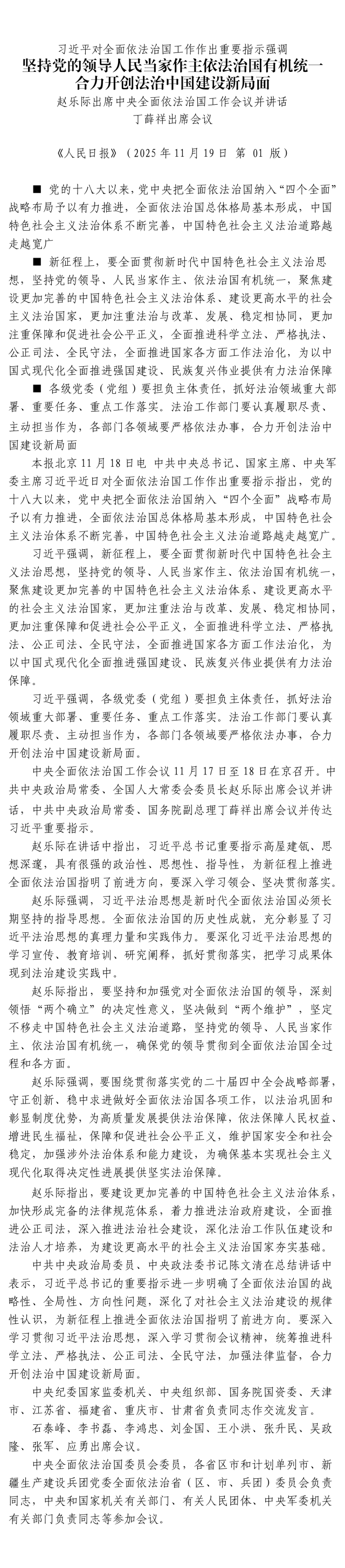 习近平对全面依法治国工作作出重要指示强调 坚持党的领导人民当家作主依法治国有机统一 合力开创法治中国建设新局面