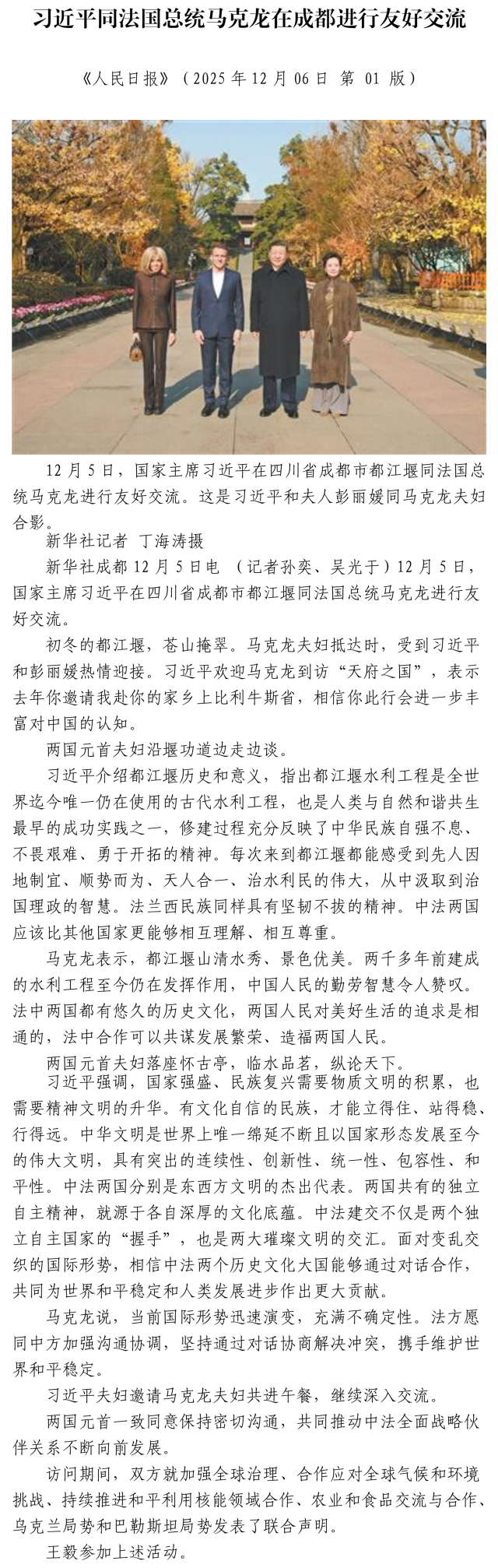 习近平同法国总统马克龙在成都进行友好交流