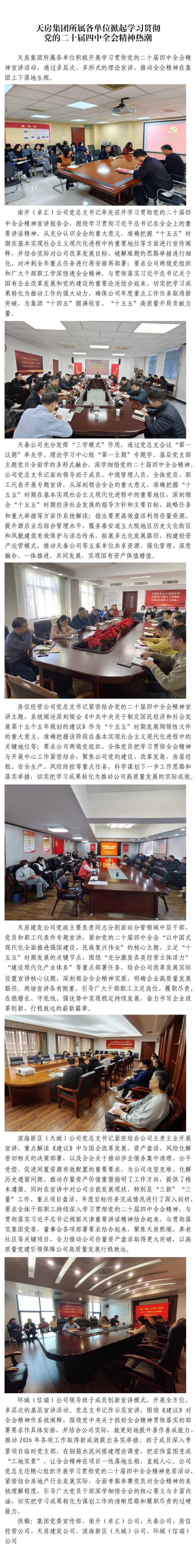 天房集团所属各单位掀起学习贯彻党的二十届四中全会精神热潮
