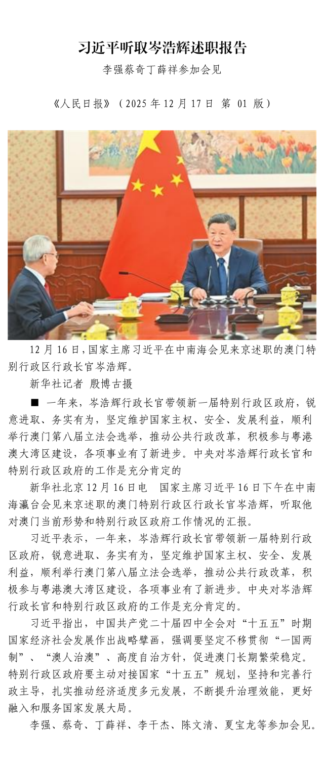 习近平听取岑浩辉述职报告
