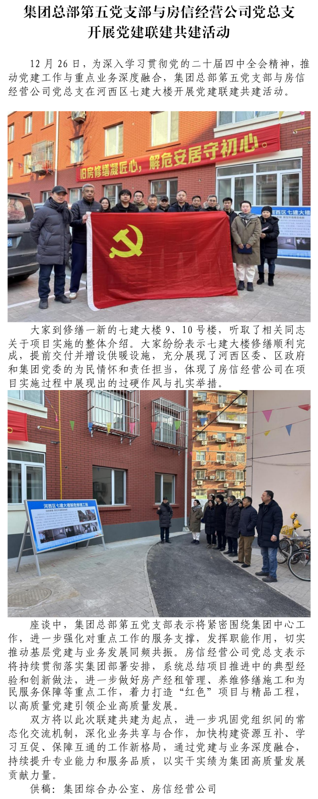 集团总部第五党支部与房信经营公司党总支开展党建联建共建活动