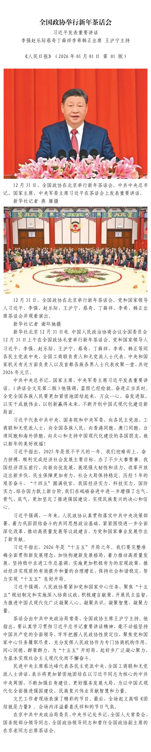 全国政协举行新年茶话会