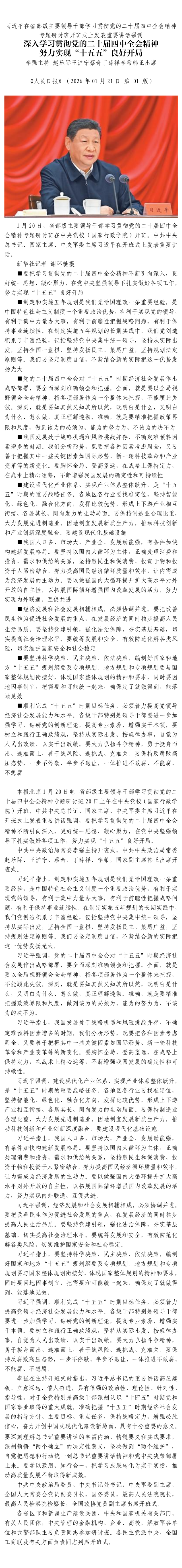 习近平在省部级主要领导干部学习贯彻党的二十届四中全会精神专题研讨班开班式上发表重要讲话强调