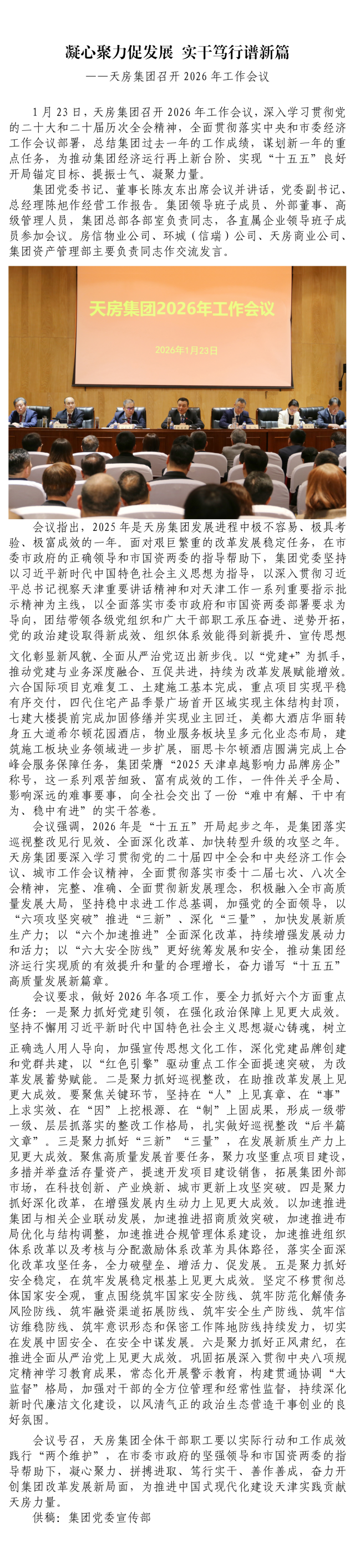 凝心聚力促发展 实干笃行谱新篇 ——天房集团召开2026年工作会议