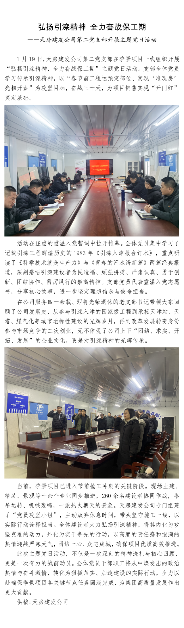 弘扬引滦精神 全力奋战保工期 ——天房建发公司第二党支部开展主题党日活动