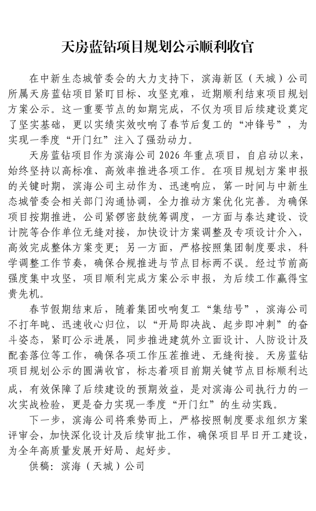 天房蓝钻项目规划公示顺利收官