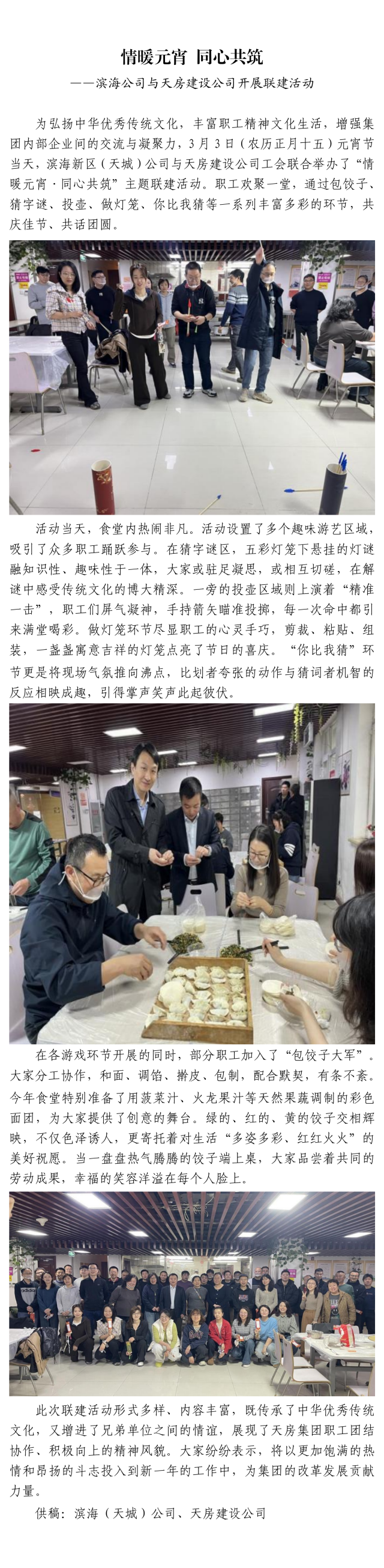 情暖元宵 同心共筑 ——滨海公司与天房建设公司开展联建活动