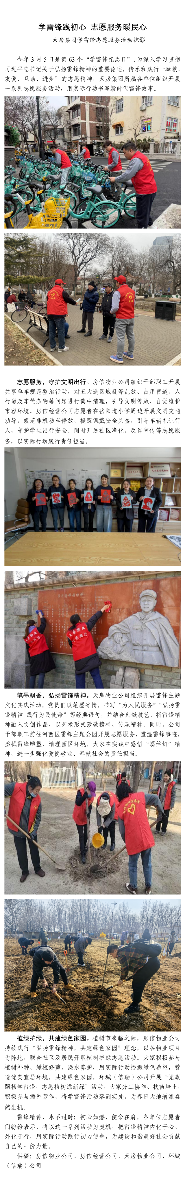 学雷锋践初心 志愿服务暖民心 ——天房集团学雷锋志愿服务活动掠影