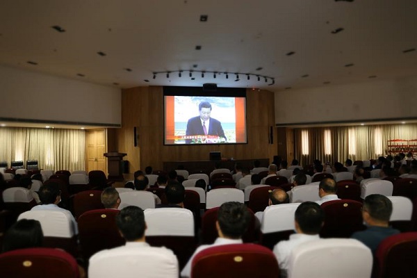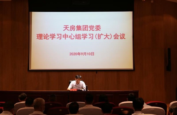 9月10日下午,天房集团党委召开理论学习中心组集体学习(扩大)会议,组织集团两级领导班子成员、集团总部中层管理人员共计120余人,集体观看学习由市委宣传部和海河传媒中心制作的电视纪录片《奋进新时代》。集团党委书记、董事长姜义同志主持会议并讲话。