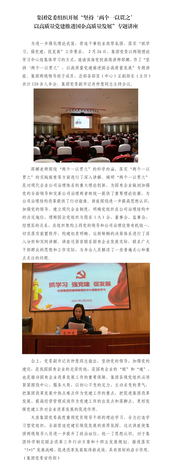 集团党委组织开展“坚持‘两个一以贯之’以高质量党建推进国企高质量发展”专题讲座