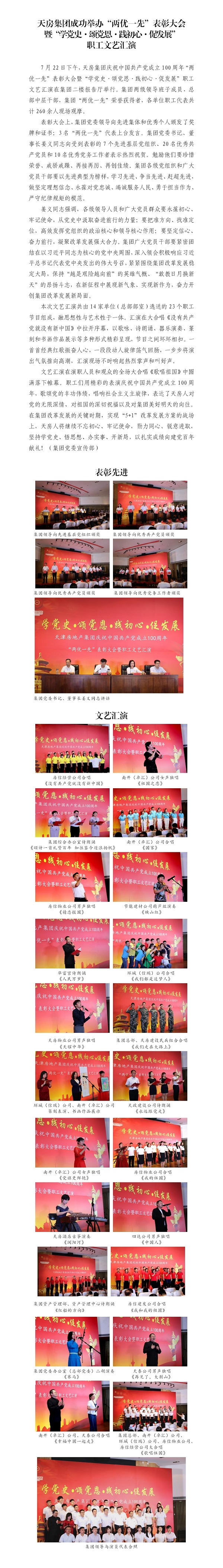 天房集团成功举办“两优一先”表彰大会暨“学党史·颂党恩·践初心·促发展”职工文艺汇演